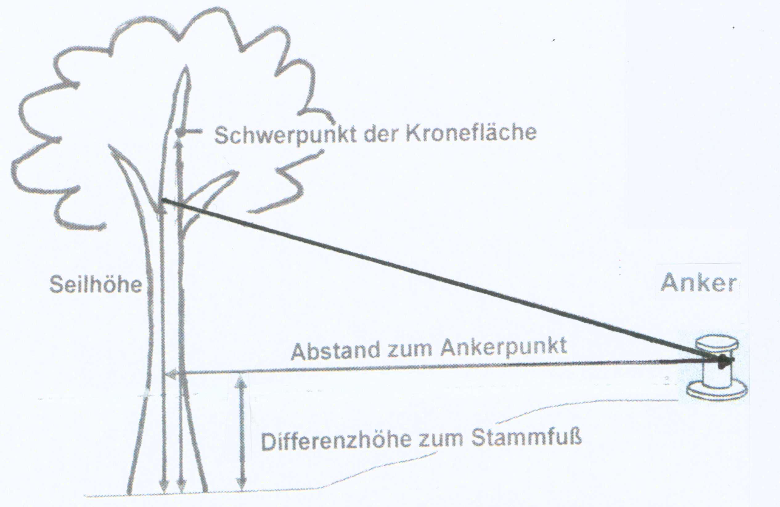 Distanz vom Baum zum Ankerpunkt (l) und dessen Höhenunterschied (Δh)